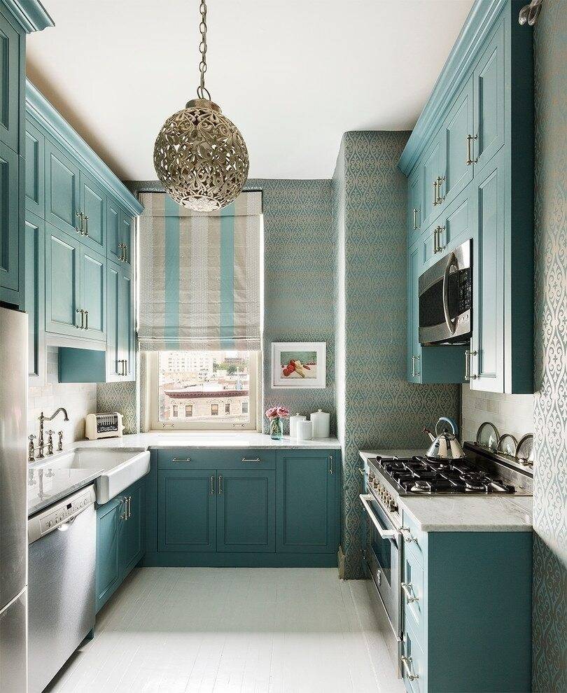 Дизайн маленькой кухни может вмещать в себя использование светлых оттенков. Дело в том, что белые тона визуально делают комнату более просторной и большой. Это является одним из лучших решений и гарантированно преобразит кухню. Как и говорилось ранее, вам нужно помнить о недостатках этих тонов. Но и на этот случай есть компромисс. Достаточно просто добавить темные фрагменты в дизайн, поместив их на места, которых вы часто касаетесь.