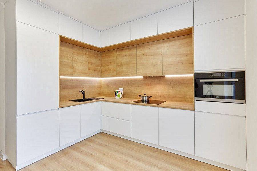 Всё больше кухонь без верхних шкафов и техникой скрытой за кухонными