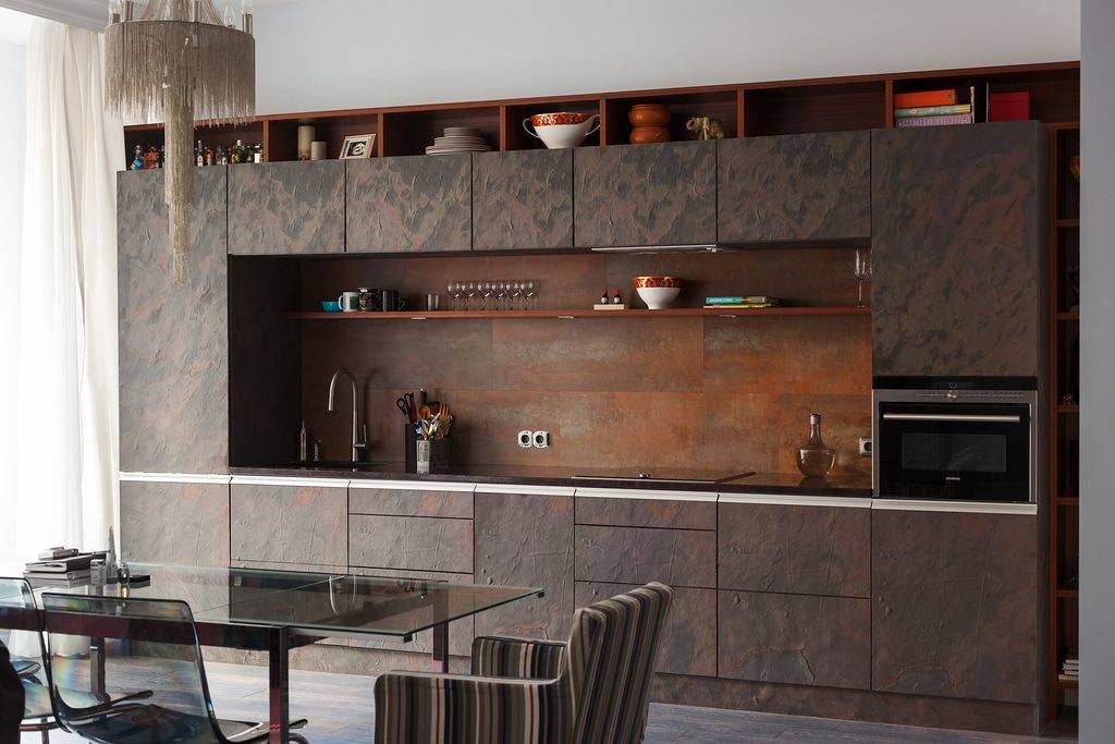 | Рис. 8-9. Каменный шпон в дизайне современной кухни |