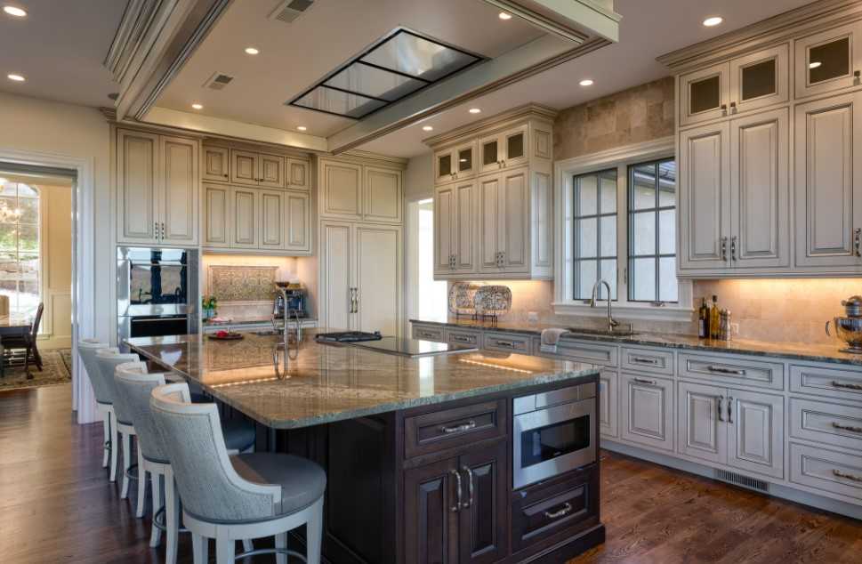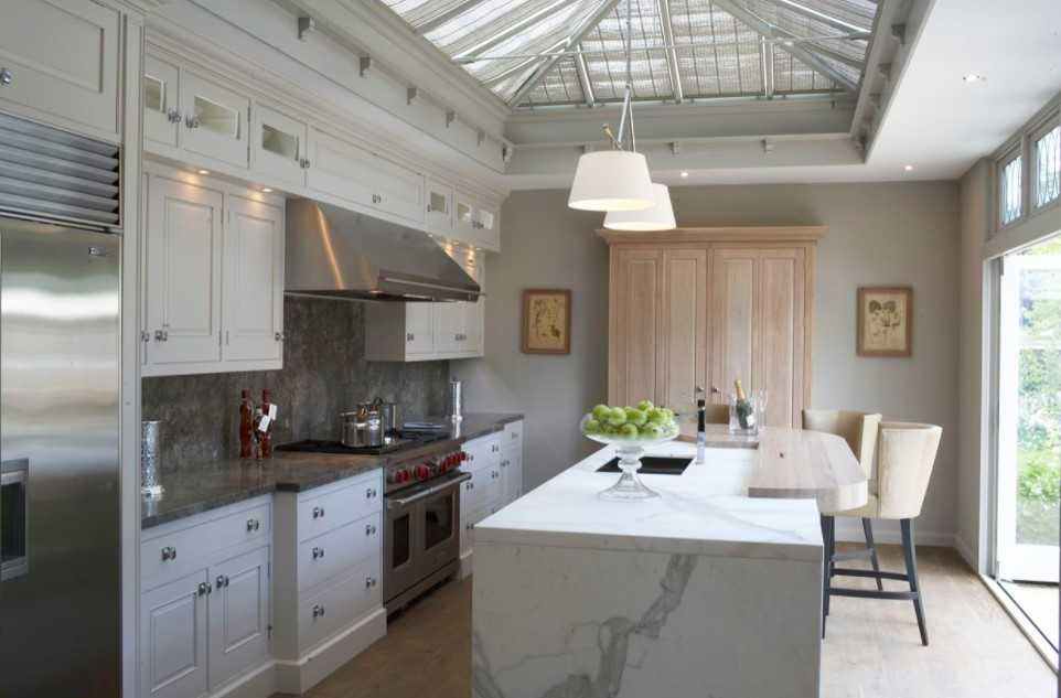 Нередко на кухне в классическом стиле можно встретить резьбу, лепнину и патинированные фасады.