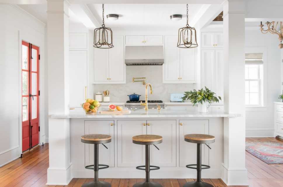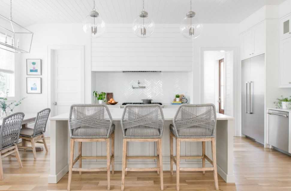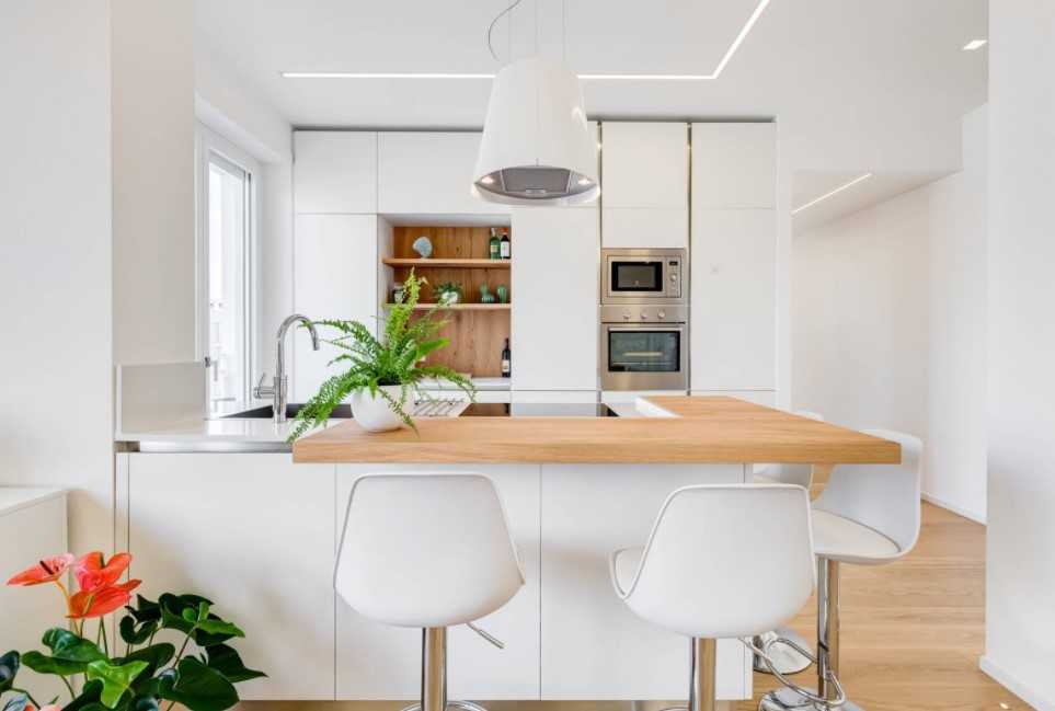 Задействование белого цвета в качестве нейтрального фона. Отличный вариант для модного интерьера кухни в 2022 году