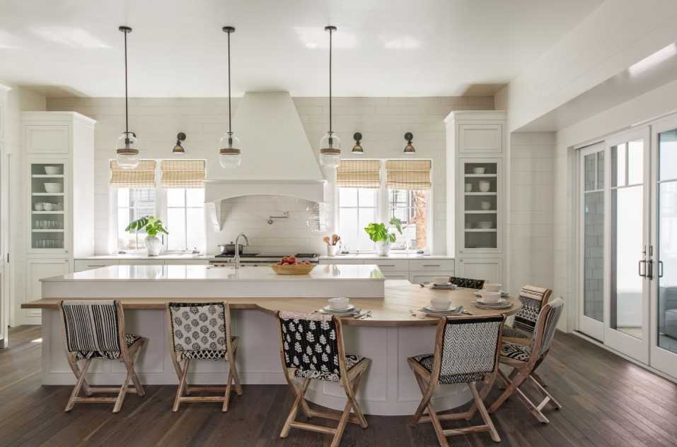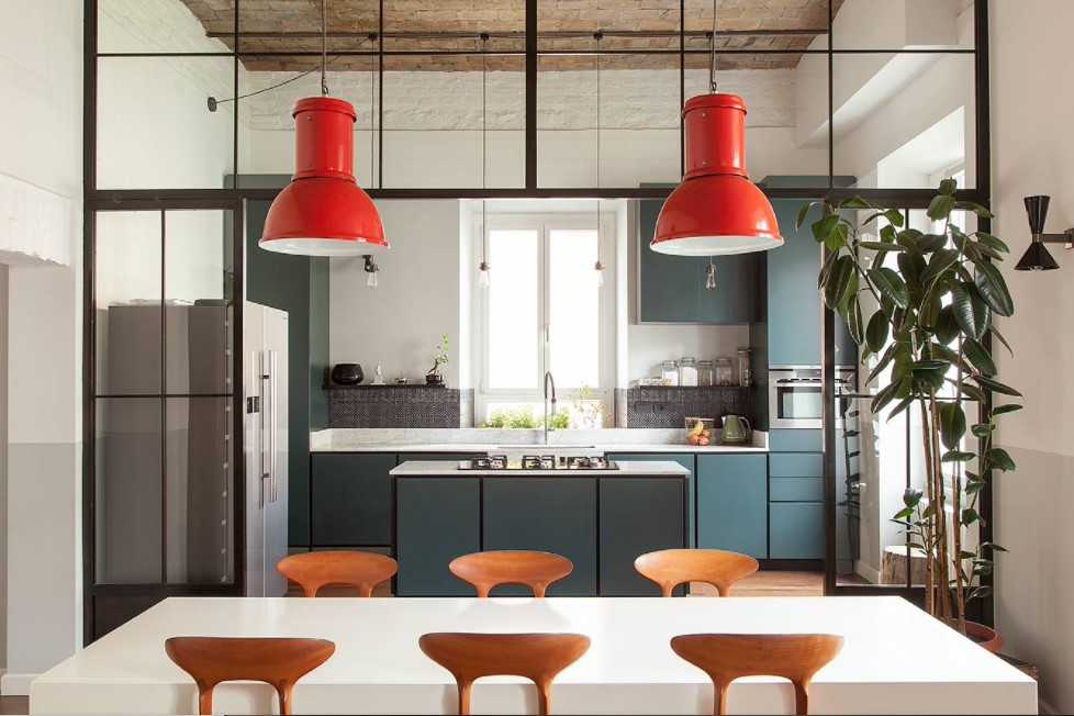 По мере того, как дизайн кухни всё больше интегрируется в общее жилое пространство дома, от этого стараются отказываться в пользу нескольких источников теплого света, размещенных в разных функциональных зонах. Необходимый минимум: выразительные подвесные лампы или люстры над обеденной зоной/кухонным островом + встроенные светильники/подсветка над рабочими столешницами.