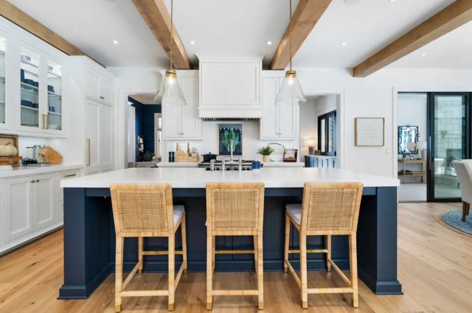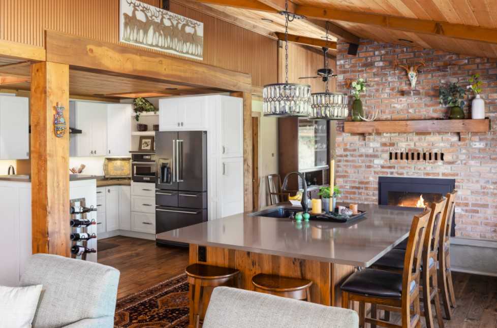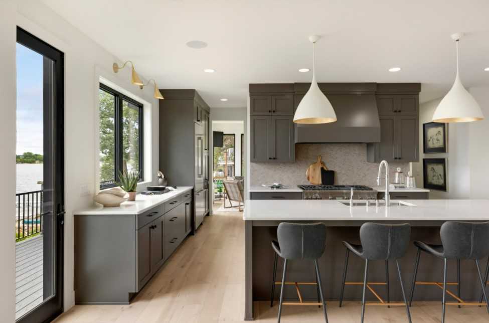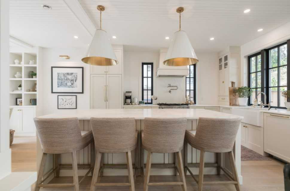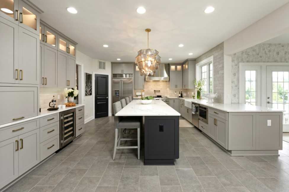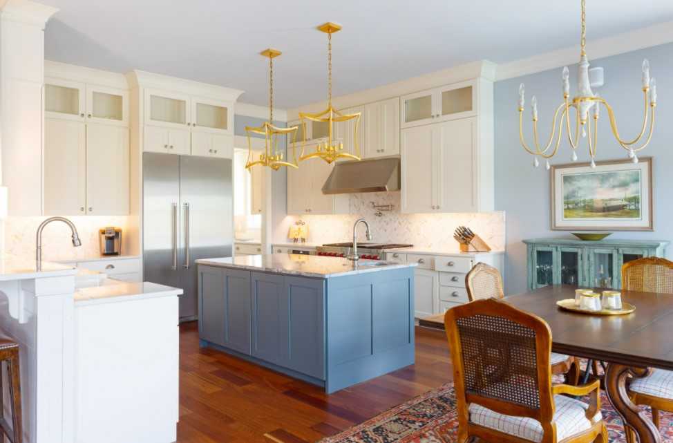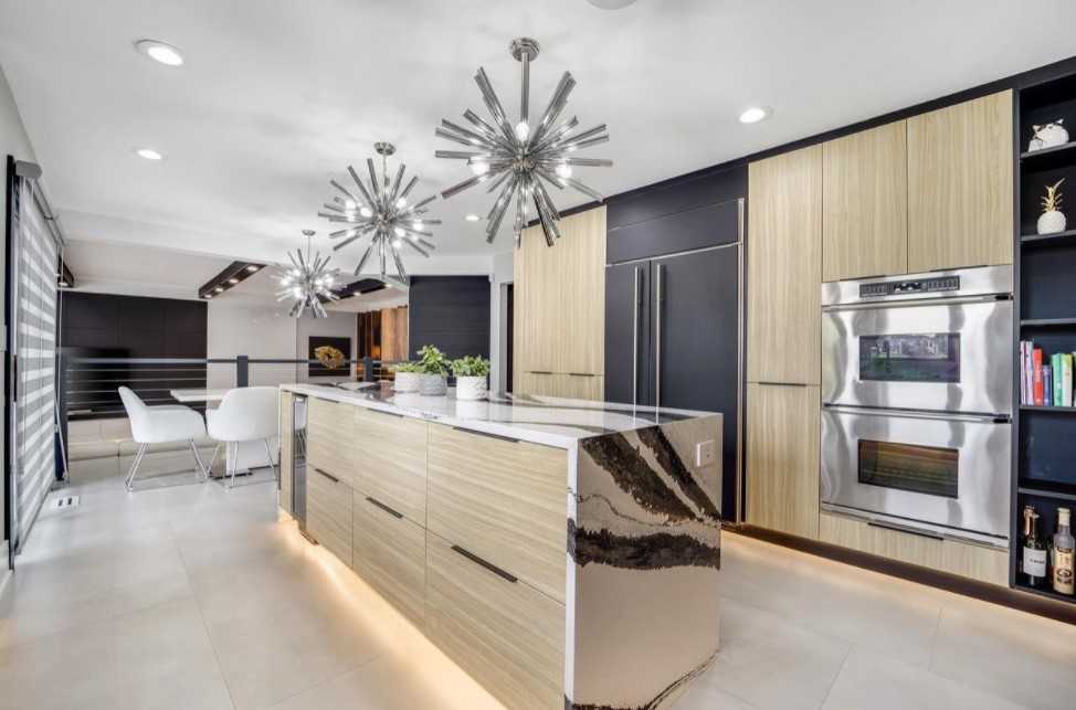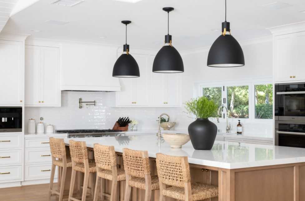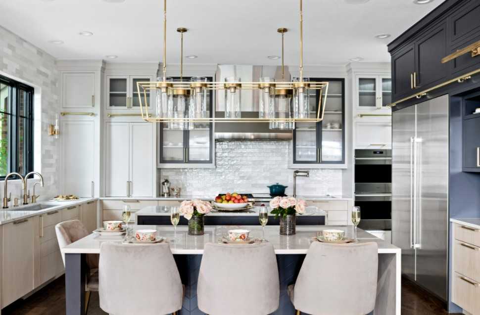 Шестой тренд в дизайне кухни 2022: теплое освещение и красивые люстры