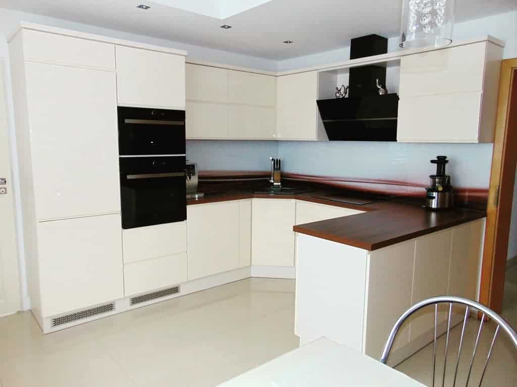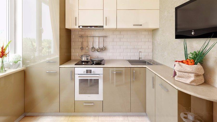 Отдай предпочтение кухонному гарнитуру с закрытыми глянцевыми фасадами. Оптимальный вариант – если за ними можно спрятать всю бытовую технику.
