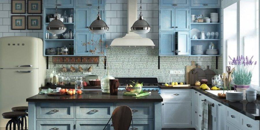Важен декор: можно поставить на полки за дверцами со стеклянными вставками посуду ручной работы, повесить занавески из грубого льна.