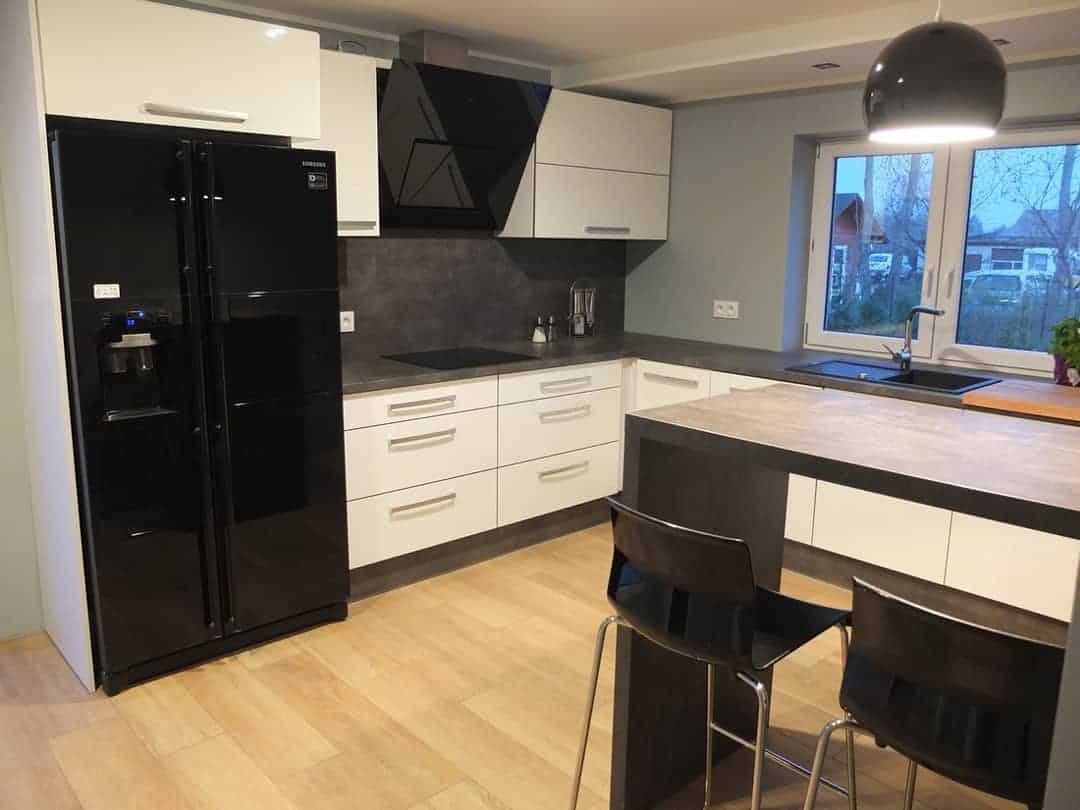Если площадь кухни насчитывает 6.5 кв. метров или даже меньше, то семья из трех человек в ней просто не помещается: нужно либо выносить холодильник из кухни, либо есть не за столом, а за барной стойкой, причем по очереди. Избавившись от стены между кухней и гостиной, можно решить эту проблему. При этом дверь в кухню из коридора можно убрать, а проход заложить. Часто в этом месте образуется ниша, в которую очень удачно встает холодильник.