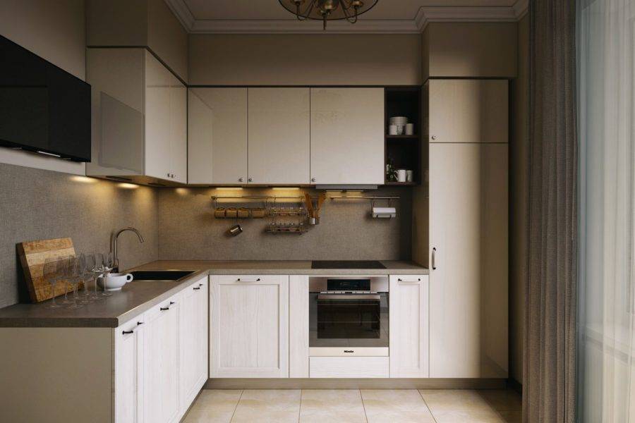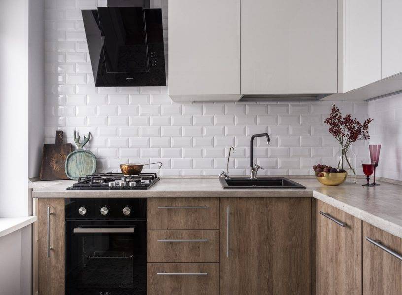 Совет! Если вы планируете создать модный дизайн маленькой кухни 2020, следует продумать функциональную роль углов. Мебельный ансамбль подбирают компактных размеров без громоздких декоративных элементов.