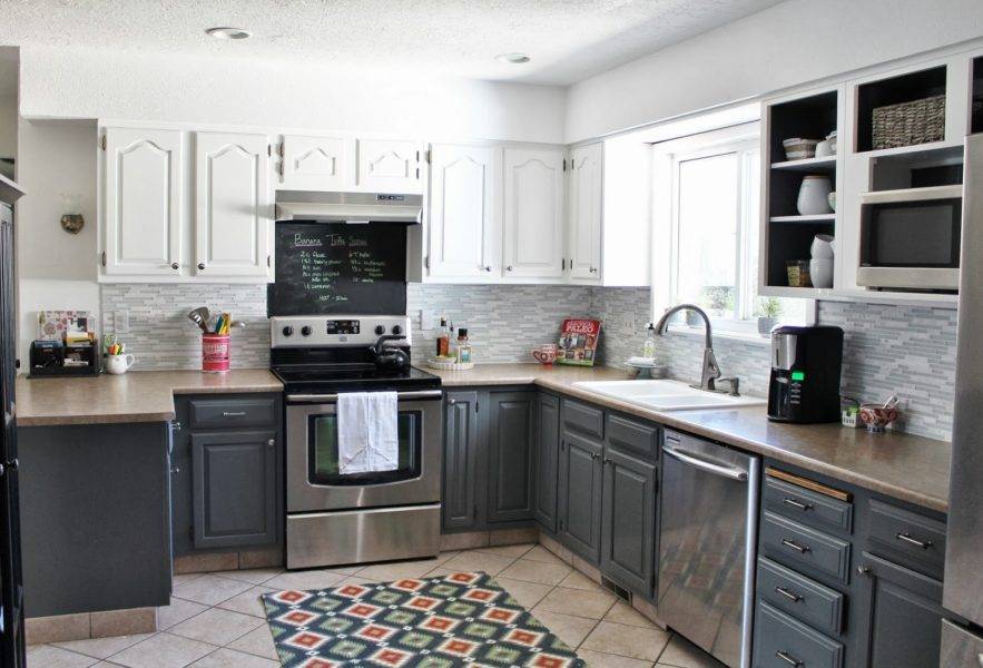 Современный дизайн кухни состоит из простой базовой отделки. Не нужно тратиться на дорогой керамогранит. Подойдет обычная светлая краска. Двигаться стоит в направлении к белому, бежевому и светло-серому.