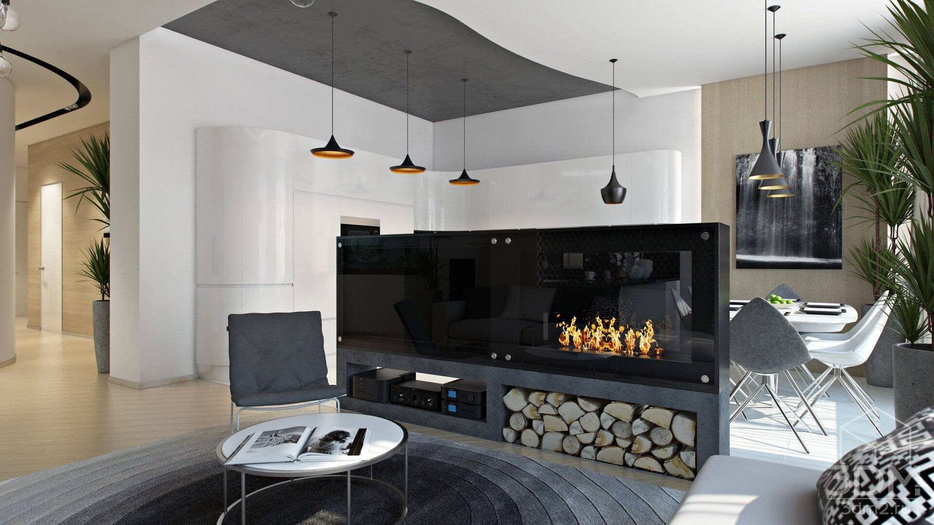 материалов, дизайнеры широко применяют световые эффекты. Например, гостиная и столовая