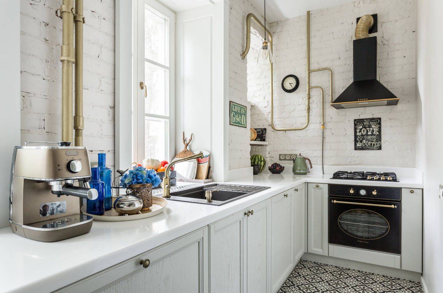 Если добавить элементы декора, можно добиться полноценного комфорта на маленькой кухне. Главное, соблюдать баланс, не перегружая отдельные зоны. Этот же вариант признан самым бюджетным.