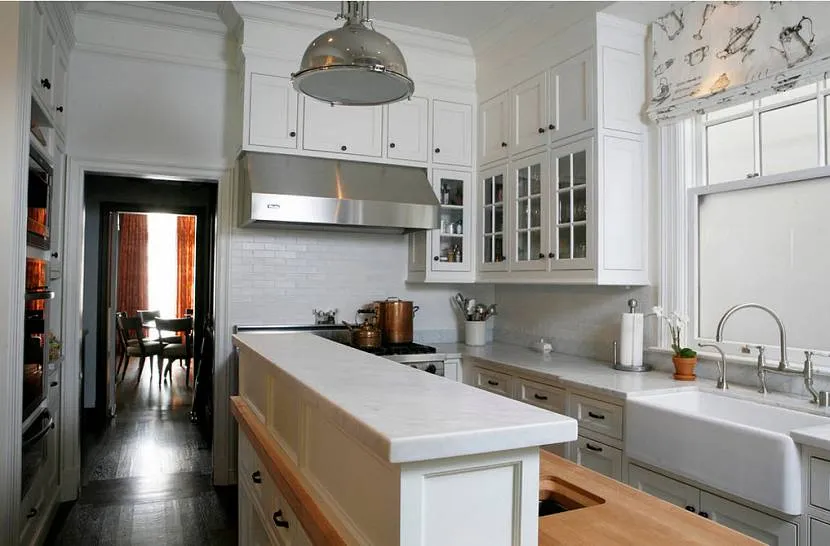 В качестве подходящих для небольшой кухни элементов классического стиля стоит отметить лепнину, зеркала, а также картины. Что касается цветовой гаммы, то предпочтение лучше отдать светлым тонам. Кроме того, стоит позаботиться о достаточном количестве точечных светильников.