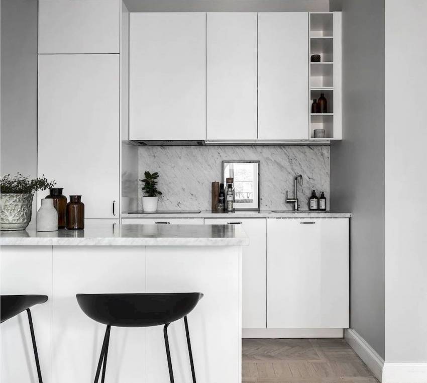Белая кухня в скандинавском стилеИсточник meroghar.com