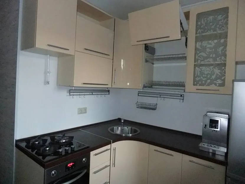 Угловая планировка наиболее оптимальна для маленькой кухни.