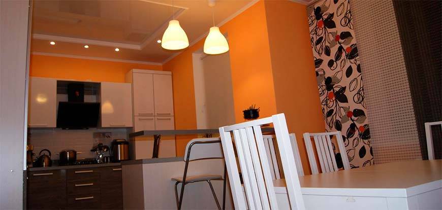 Установка натяжных потолков может рассматриваться, но в редких случаях, поскольку они также укорачивают высоту кухни. Такие конструкции уместны тогда, когда поверхность потолка далека от идеальной, то есть имеет большое количество дефектов.