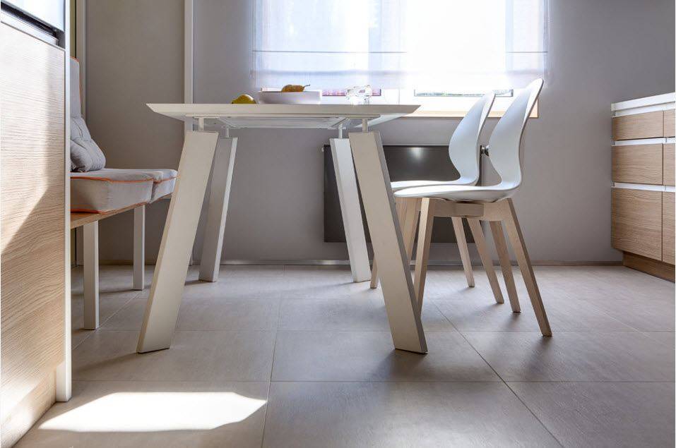 Для небольшой семьи подойдет раскладной стол, который будет использоваться только в случае необходимости. Столешница может быть продолжением подоконника или иметь выдвижной механизм.