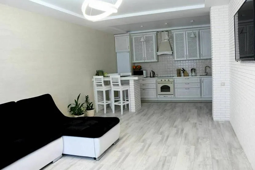 Простой покраски потолка для кухни-гостиной скорее всего будет недостаточно, даже если он у тебя идеально ровный. В него не удастся удобно встроить многоуровневое освещение, без которого не обойтись в объединенной комнате.