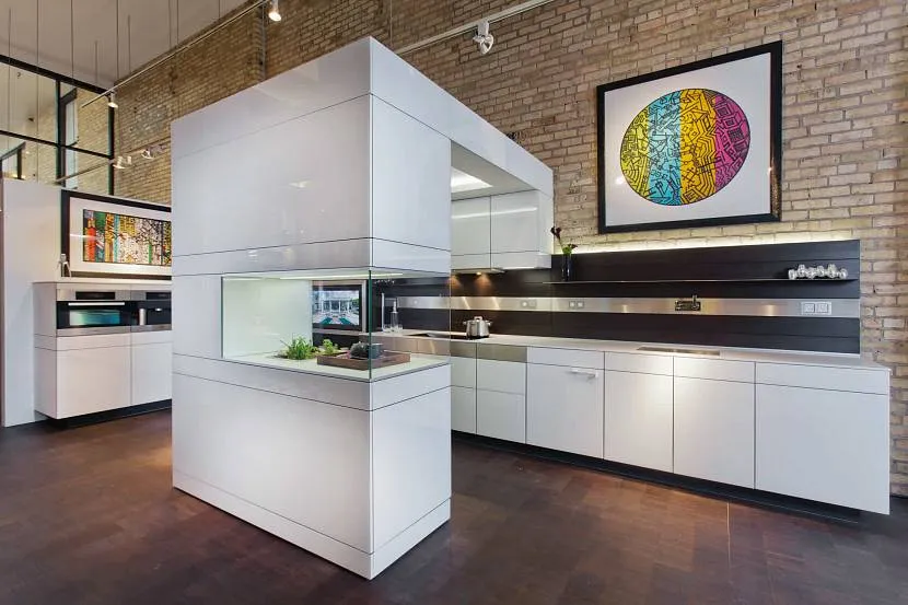 Одна из главных проблем, которые неизбежны в кухнях-гостиных, – проникновение запаха во все зоны помещения. Для борьбы с этим явлением следует использовать достаточно мощные вытяжные системы с прямым воздуховодом.