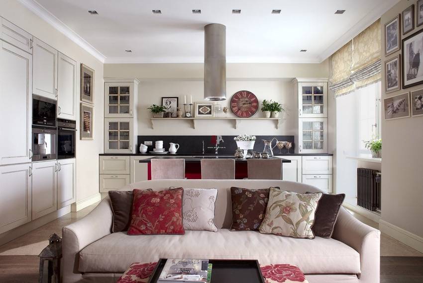 Способы расположения дивана в кухне-гостиной