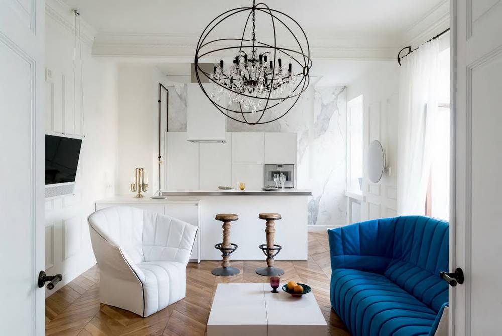 Если отделочные работы в планах производить в малогабаритной квартире с небольшими комнатами, то кухню совмещать с гостиной рекомендуется практически во всех случаях. Единственное исключение – когда снос межкомнатных стен запрещен проектом дома. При этом даже после объединения общая комната обычно не становится сильно просторной. Дизайн для нее лучше всего разрабатывать в «облегченном» варианте со светлым декором и минимумом мебели.