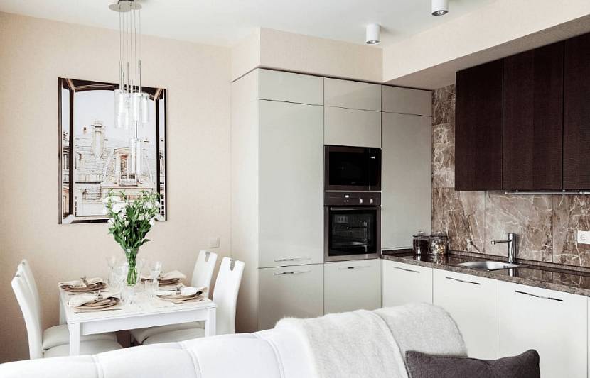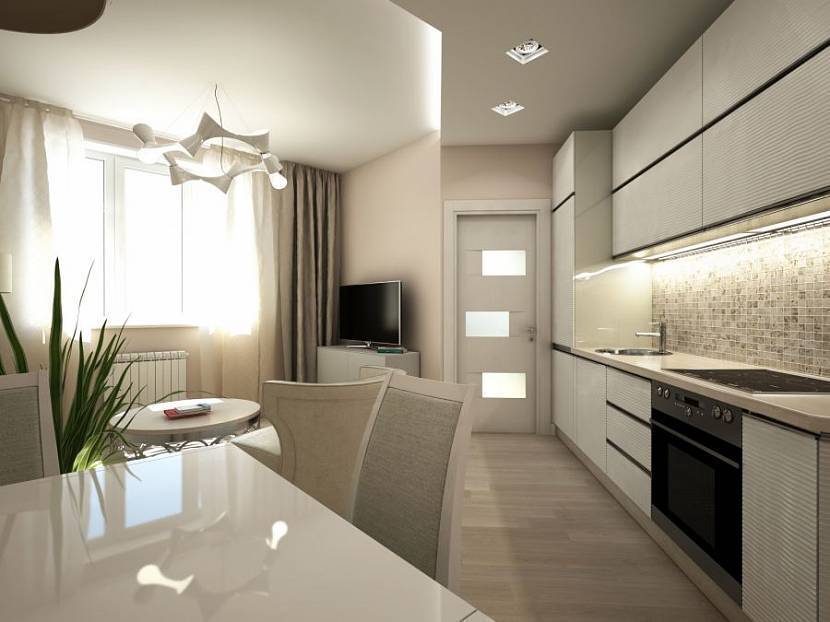 Если есть возможность согласовать перепланировку по присоединению лоджии к площади маленькой кухни, то стоит ей воспользоваться. Так удастся выделить место для обеденной зоны, барной стойки или небольшой зоны отдыха.