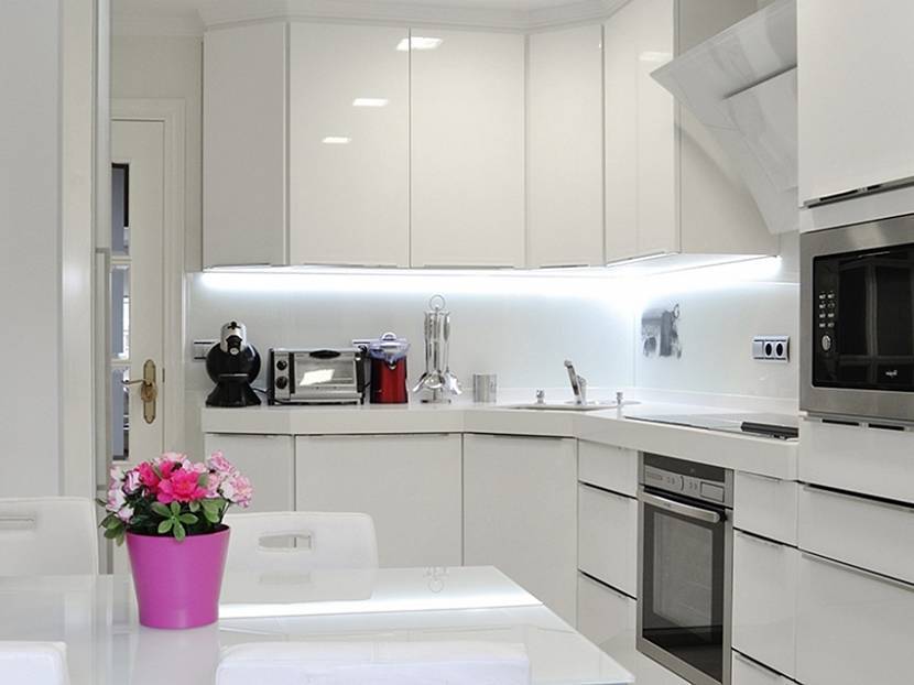 Правильно организованное освещение позволяет не только скрыть изъяны маленькой кухни, но и визуально расширить пространство. Для этого рекомендуется: