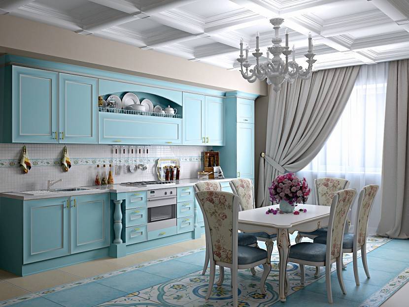 Этот вариант идеально подходит для малогабаритных комнат. Благодаря стилизация в соответствии с французской модой прошлого века, можно создать интересный дизайн без крупных вложений. Современная кухня в бежевой или оливковой цветовой гамме – стильный и удобный вариант.