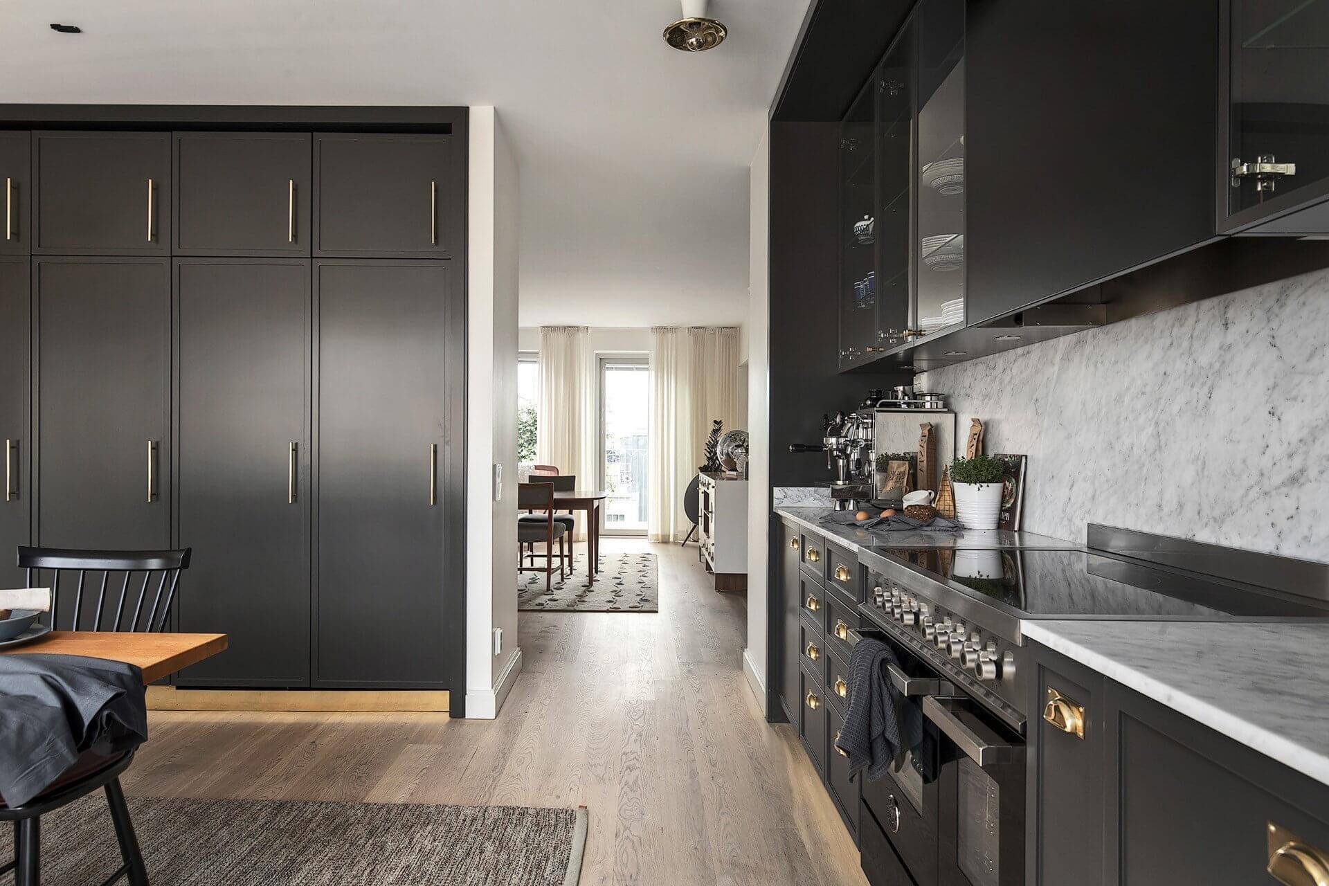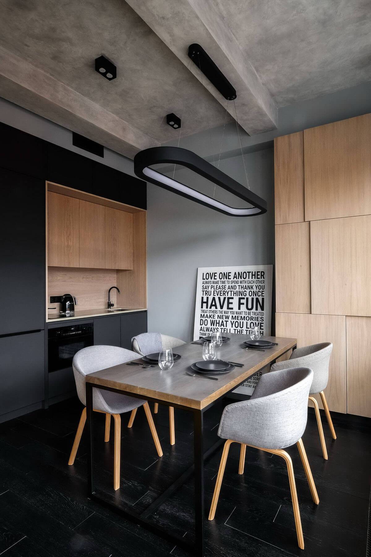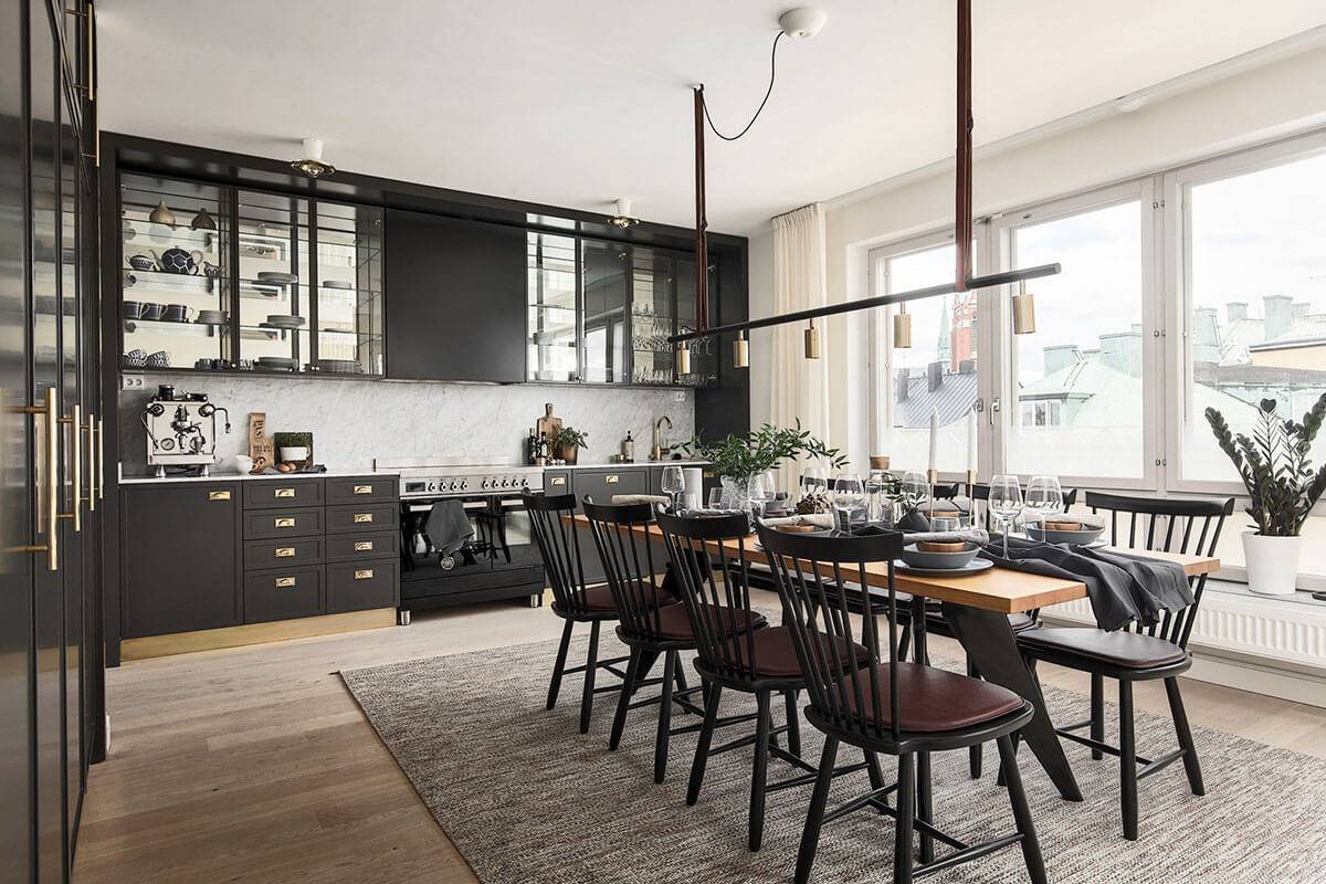 У черного цвета также есть оттенки. Создавая дизайн кухни, рекомендуется выбирать цвет древесного угля. Это значит, что черные поверхности должны иметь легкий блеск, но не быть зеркальными.
