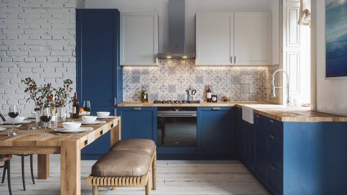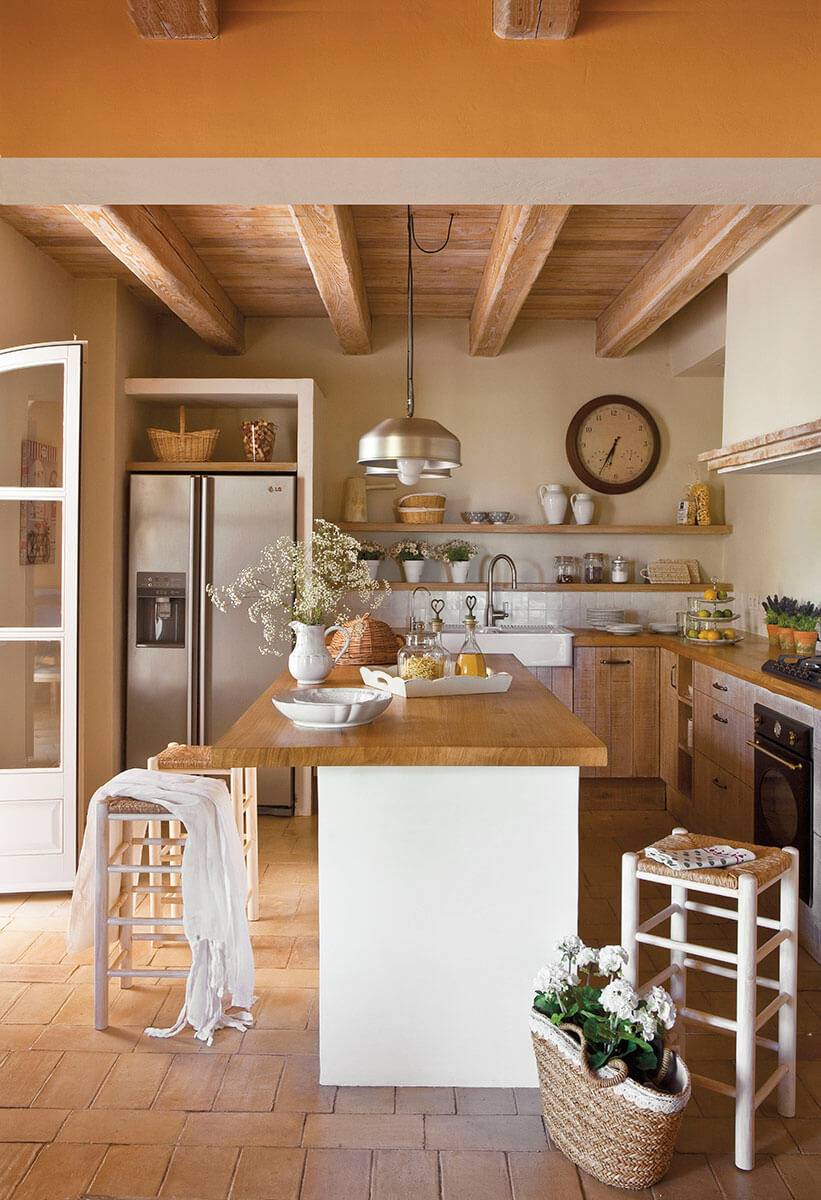 Обратите внимание, требование не использовать яркие цвета относится даже к тем случаям, когда создается кухня в актуальных в 2019 году стилях кантри или этно