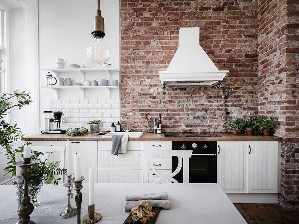 Прованс. Подойдет для тех, кто мечтает создать на кухне неповторимую атмосферу домашнего уюта. Льняные или хлопковые занавески с цветочным узором, старая антикварная мебель и кирпичная кладка способны сделать обстановку романтичной и современной.