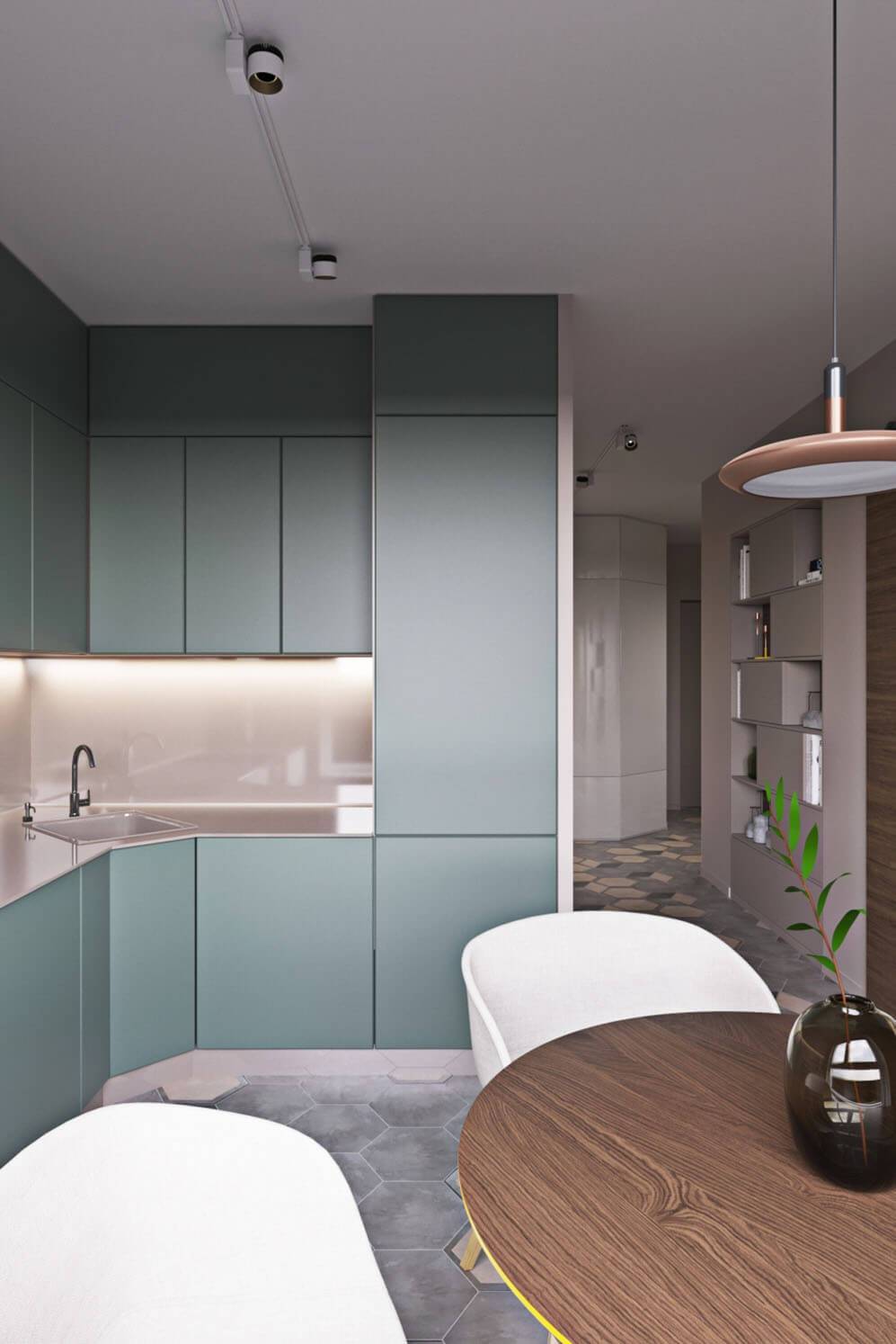 В случае, если в планы капитального ремонта перепланировка стен не входит (объединение кухни с гостиной или использование балконной зоны), то есть необходимость выбора дизайна определенного цвета, чтобы зрительно увеличить комнату.