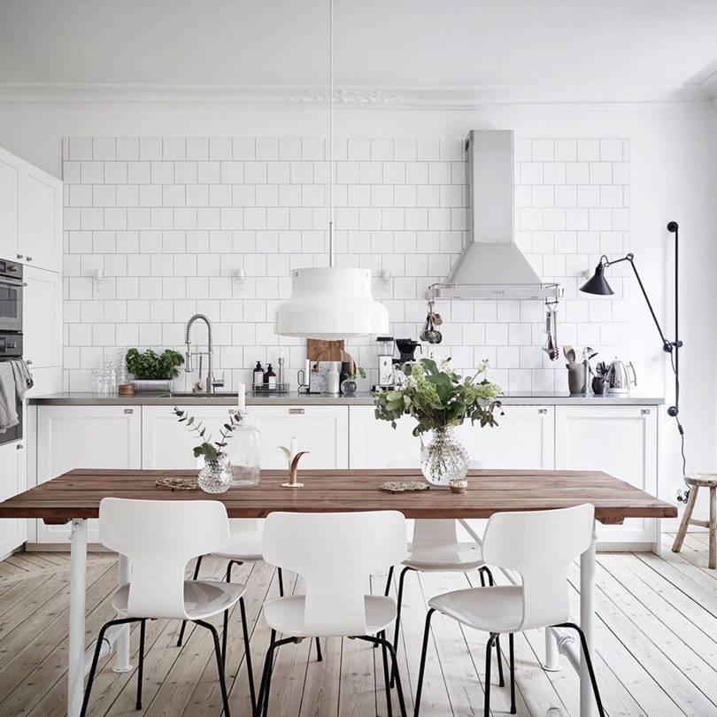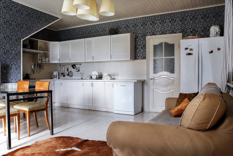 Недостаток только один — в зоне кухни белизна быстро потеряет свежесть, поэтому будьте готовы к регулярной уборке.