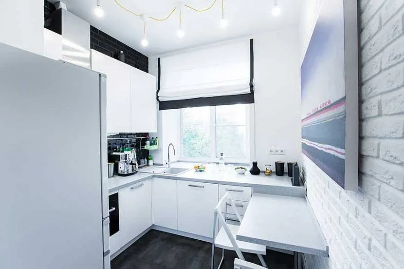 На маленькой кухне в хрущевке переизбыток темного формирует мрачную атмосферу, важно соблюдать цветовой баланс. Необычная черно-белая кухня в хрущевке смотрится элегантно