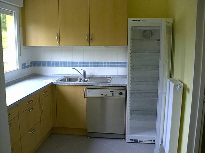 Все габаритные предметы интерьера располагают в дальнем углу. Самый крупный предмет в кухне – холодильник. И если нет возможности внести его на лоджию или в коридор, то его также рекомендуется расположить в дальнем углу. Выбирайте модель узкую и высокую. Кухонная техника должна быть встроенной.