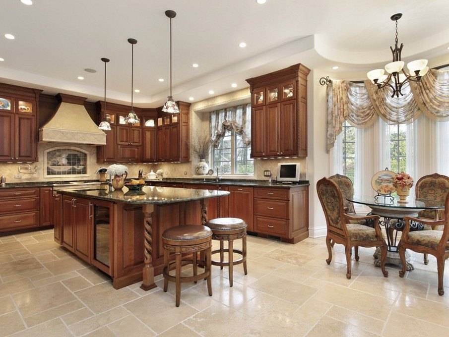 Поэтому кухне отводится довольно просторное помещение для расположения там всего необходимого при готовке угощений гостям или семье.