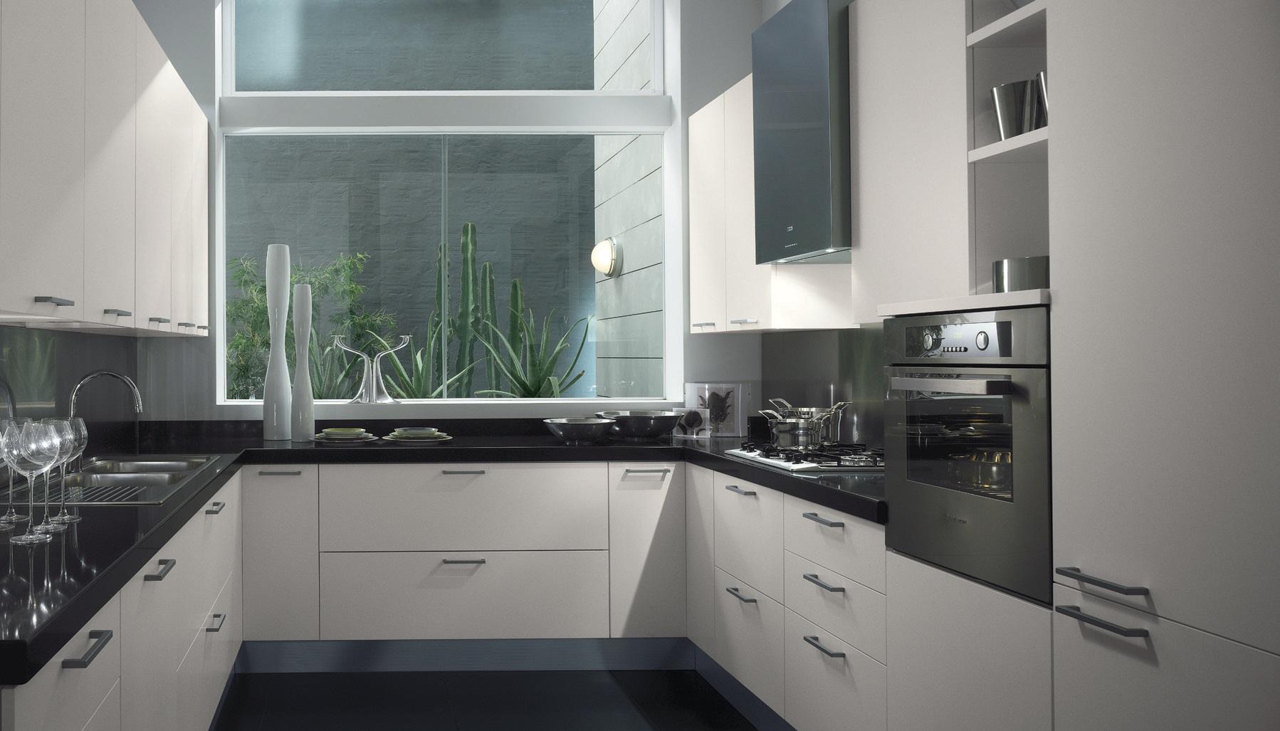 Однако, если вы не планируете оборудовать кухню островком (об этом мы расскажем позже в статье), то П-образный гарнитур следует оформить небольшого размера, чтобы проход между шкафами не превышать 120 см, иначе теряется преимущество П-образной компоновки.