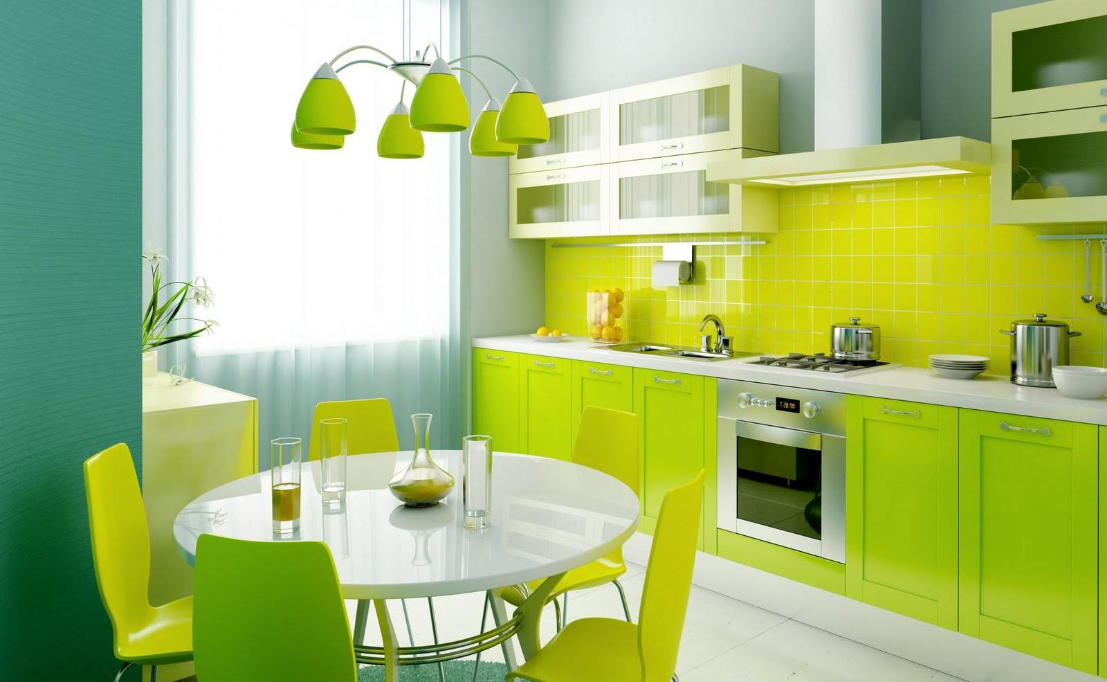 Изумрудная кухня создает позитивное настроение. Палитра зеленых оттенков хорошо сочетается с различными цветами (красный, синий, желтый). Наиболее естественно смотрится интерьер в зелено-коричневых красках.
