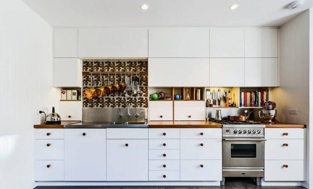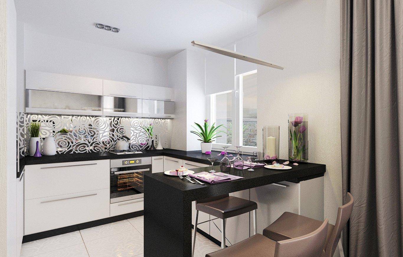 Если важнее рабочая зона, выбирают Г-образный или двухрядных кухонный гарнитур, если для него достаточно места. В них много ящиков для хранения, но обеденная зона рядом не поместится. В качестве стола используют откидные, выдвижные конструкции или создают небольшую барную стойку как часть гарнитура.