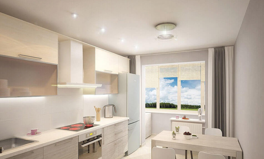 Освещение – мощный инструмент в дизайне малогабаритной кухни. Ограничиться одной потолочной люстрой – значит, отказаться от возможности оптически расширить пространство.