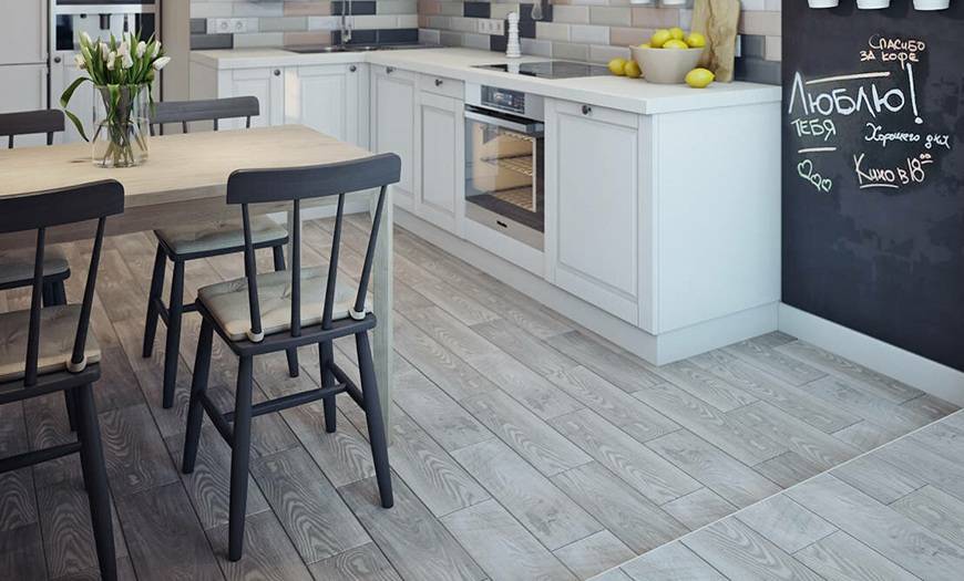 Покрытие кафельной плиткой, керамогранитом или водостойким ламинатом будет удачным и практичным. При выборе стоит ориентироваться на устойчивость материала к влаге.