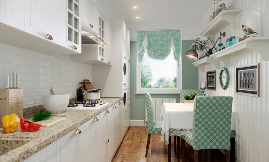 прованс. Именно такое решение подойдет для кухни просто идеально. Если правильно подобрать цветовую палитру, то можно получить умиротворенный дизайн;