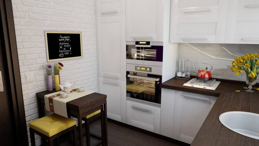 За счет большей вместительности, такой гарнитур позволит значительно сэкономить пространство. Идеальные варианты мебели для обустройства кухни 5 кв. метров: мини-гарнитур, модульная мебель, мобильные кухни и гарнитуры-трансформеры.