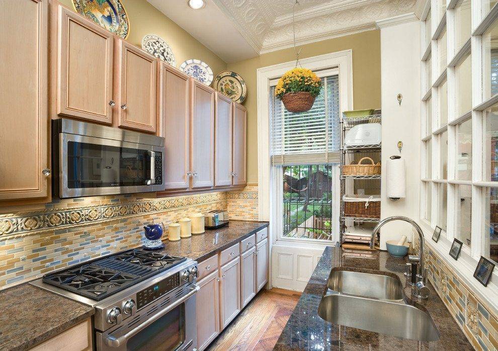 На узкой кухне важно найти решения для хранения вдоль стен. Будь то высокие шкафы или полки над раковиной или плитой, вам нужно подумать о подвесных корпусах. Специально для квартирных кухонь узкое пространство может поставить вас в невыгодное положение, но если вы тщательно продумаете дизайн комнаты, пространство может вас удивить