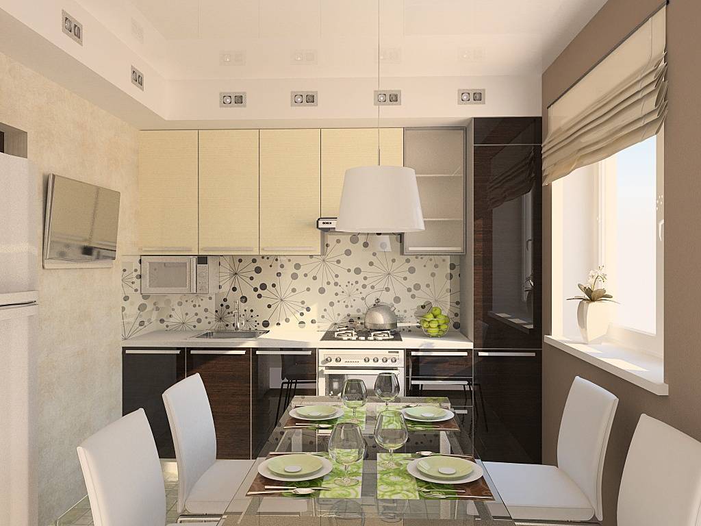 - Гармоничная расстановка элементов обустройства в маленькой кухне.
