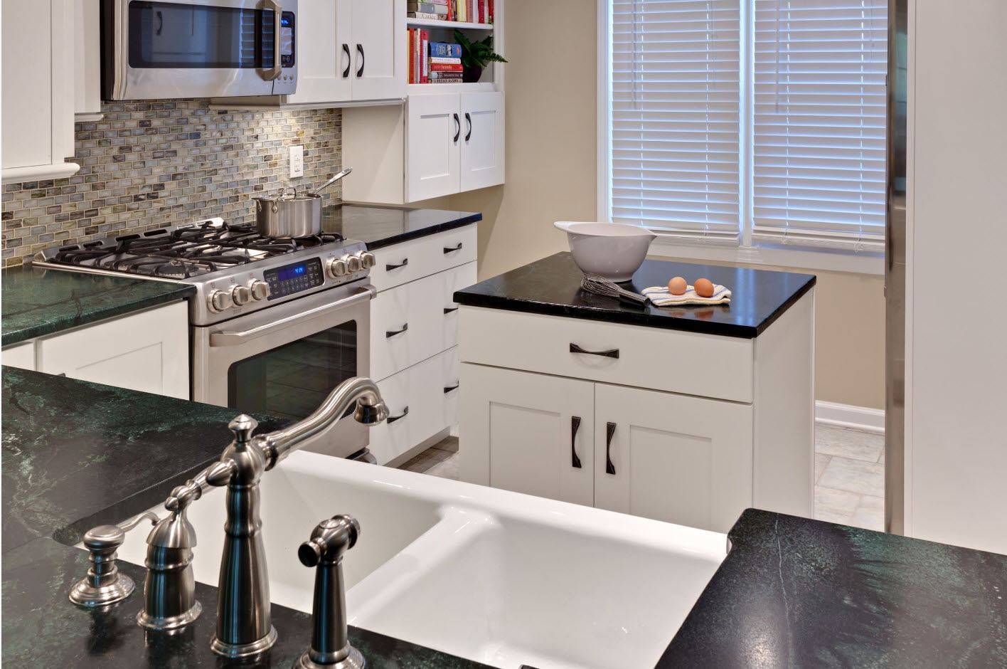 Столешница осуществляется с кварца, гранита, материала на основе композита, кремния. Каменная плита наиболее устойчива к повреждениям.