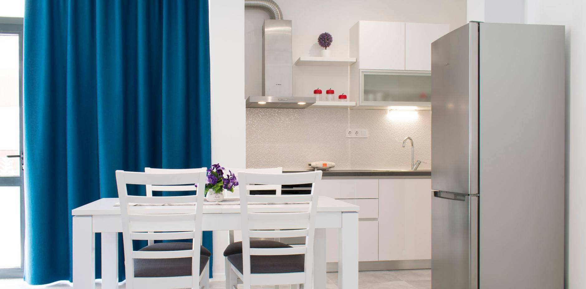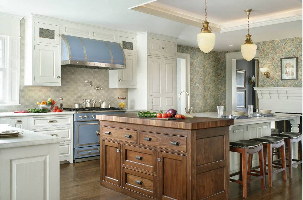 Юг Франции – это средиземноморье. Неудивительно, что голубой цвет получил такое широкое применение в стиле прованс. Голубой цвет привнесет в интерьер вашей кухни атмосферу морской романтики. Чаще всего применяются следующие оттенки голубого: небесно-голубой, лазурный, цвет морской волны.