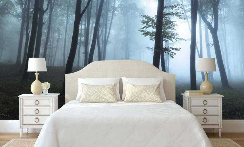 Панорамные изображения также станут отличным вариантом для небольших спален за счет способности расширять пространство.