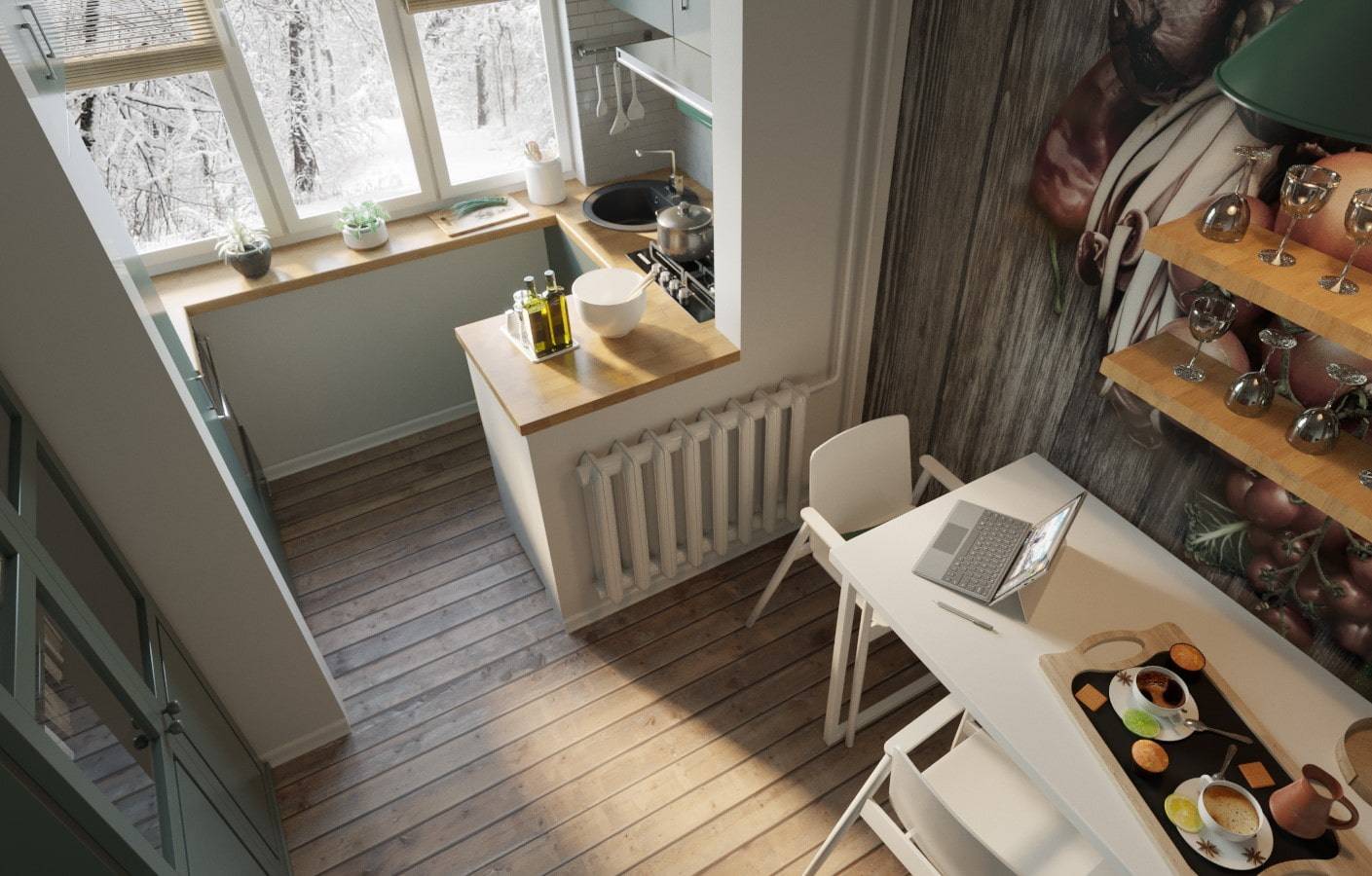 Счастливые обладатели смежного с кухней балкона могут увеличить полезную площадь на 2-3 квадратных метра, объединив оба помещения.