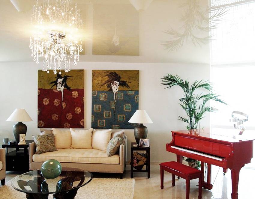 Для классических гостиных подойдут матовые и атласные полотна. Благодаря разнообразию цветов, форм и осветительных приборов можно подобрать дизайн потолка к любому интерьеру. Установка многоуровневой конструкции с правильным освещением позволяет увеличить высоту потолка примерно на 20 см.