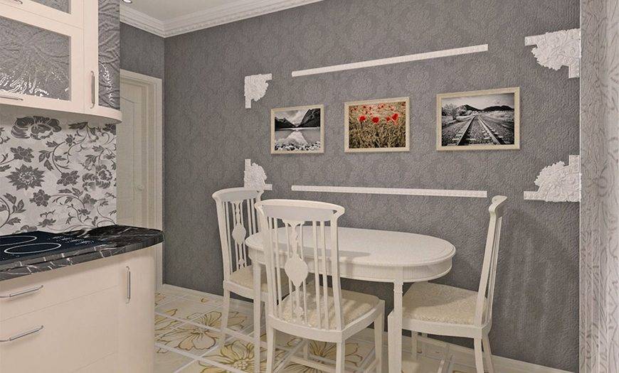 На маленькой площади нежелательно клеить обои темных оттенков. Они визуально уменьшат пространство, что не исправить даже минимальным количеством кухонного гарнитура. Они создадут угрюмую атмосферу.
