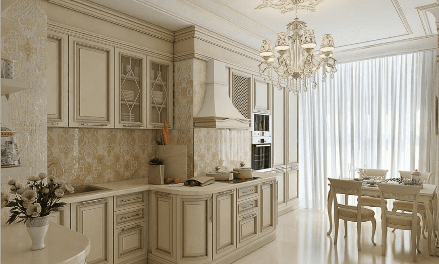 Что касается большой и просторной кухни, отделка помещения светлыми оттенками сделает ее еще больше, что также лишит уюта